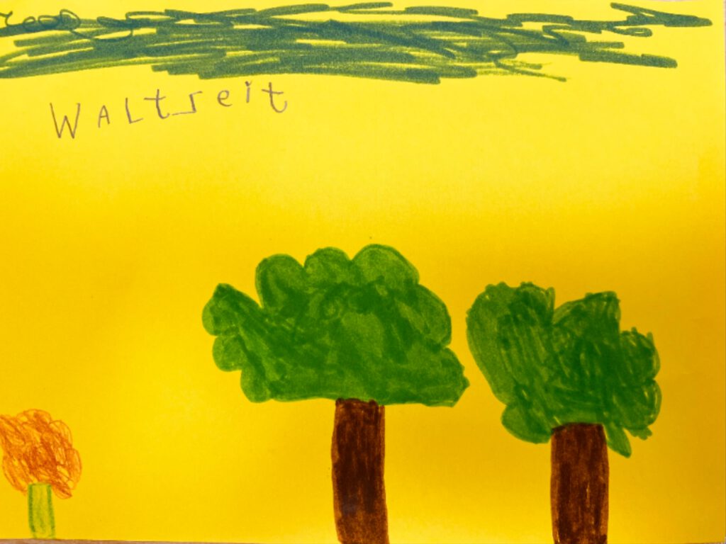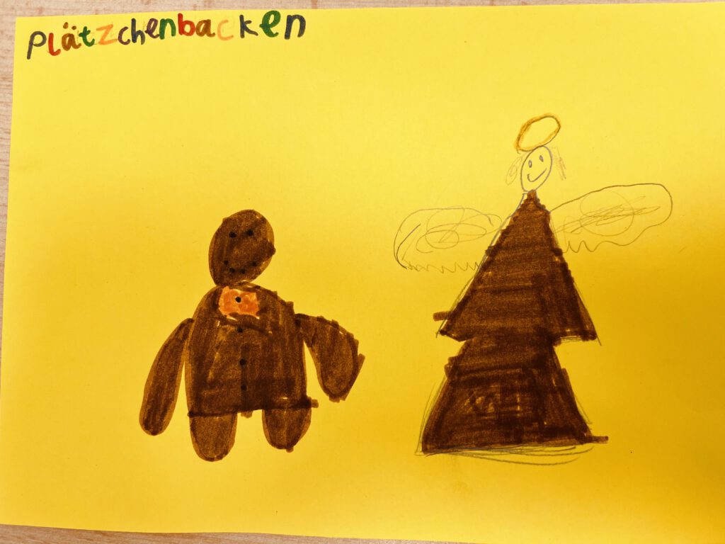 Das kalte Wetter wollten wir für eine Kunststunde draußen in der Natur und auf dem Schulhof nutzen. Dafür suchten wir auf einem kurzen Waldgang Naturmaterialien für unsere Kunstwerke aus. Im Anschluss gestalteten wir unsere Eiskunstwerke und die Schneebilder. Zuletzt verschöerten wir alles noch mit bunten Farben.