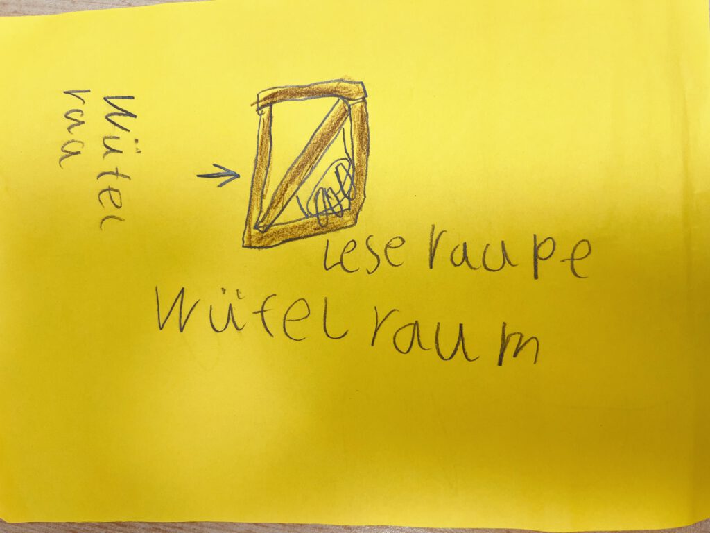 Die Fuchsklasse hat im Sachunterricht das Thema „schwimmen und sinken“ behandelt. Kalle hatte uns einen Brief geschrieben. Er war auf einem Ausflug mit seinen Freunden. Doch leider ist das Boot gesunken. Zum Glück konnten sich alle retten. Aber wir sollten Expertinnen und Experten im Boote bauen werden, damit wir die Freunde retten können. Zuerst haben wir gelernt, was schwimmt und was sinkt. Als wir das wussten haben wir Bauanleitungen für unser Boot geschrieben. Im Anschluss haben wir während einer Waldzeit das Material für unser Boot gesucht. Danach haben wir die Boote gebaut und einen Schwimmversuch gemacht. Manche Kinder haben ihre Boote noch verbessert. Zum Schluss sind wir zum Bach gelaufen, um die Boote schwimmen zu lassen und Kalles Freunde zu retten. Das hat uns viel Spaß gemacht, weil alle Boote geschwommen sind und wir die Freunde retten konnten.